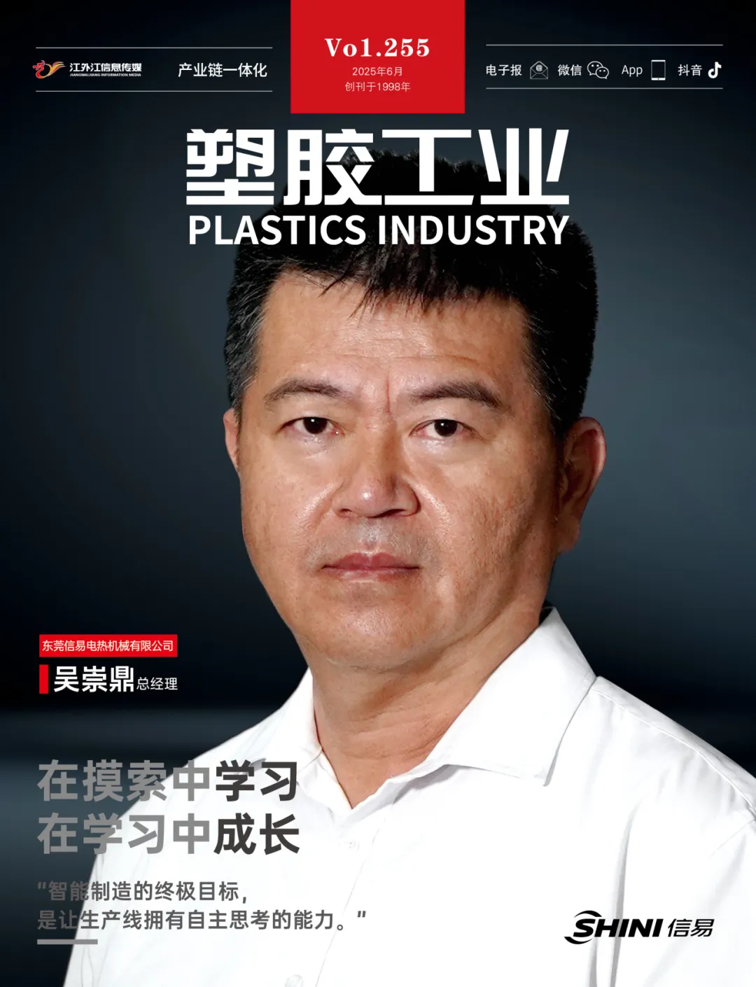 5月9日,《塑胶工业》在东莞信易科技园见到了吴崇鼎。当天,结束了办公室的采访后,他带着我们饶有兴致地参观新工厂,详细介绍了工厂数字化管理的全方位实施成果,交流了如何引入先进的自动化设备和信息化管理系统,以及如何大力推动绿色制造,提升光伏利用率,减少能源消耗和环境污染。言谈间,他的眼神始终闪烁着自豪的光芒。